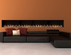 While there are many important factors to consider when choosing a fireplace, one of the most important features of a modern linear gas fireplace is the height of the glass opening. If the rectangular fireplace opening is too narrow, the view to the flame will be limited. A small fireplace opening will also force the fireplace to be installed in the center of the wall, as apposed to installation on a lower part of the wall. It is important to make sure the fireplace in the design includes a glass opening of at least 16″, though the final size will depend on the linear fireplace proportions desired and the space where the fireplace will be installed See-Though Fireplaces and corner fireplace are normally ordered with 24″ glass).