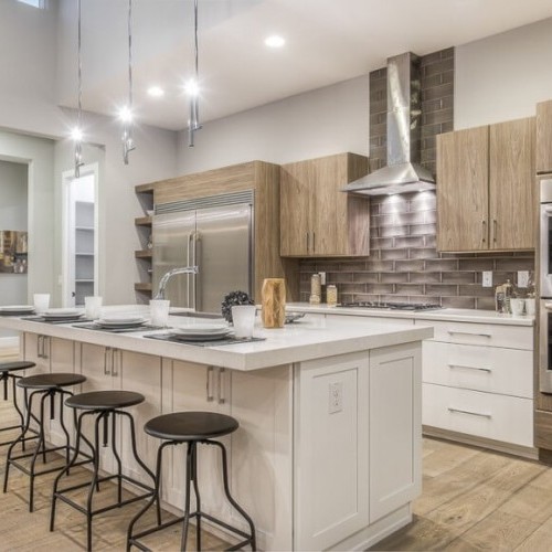 If you prefer a more modern, minimalistic look in your kitchen, you probably want to go with a frameless cabinet with a full overlay type door style that is not too ornate. Or, perhaps a slab door style with a laminate or an exotic veneer. Depending on your preferred color palette, you can go with a solid painted door or go with a wood species with a calmer grain pattern with a stain.