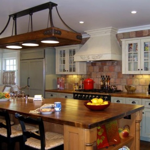 For your traditional kitchen’s counters, granite, marble, wood or patterned engineered stone will help complete the look.