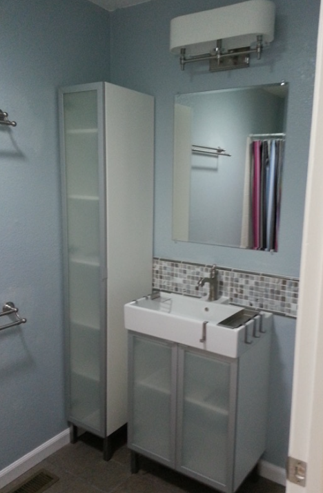 A great option when painting the bathroom is to use one of the new “paint and primer” products, which serve as both types of coating in the same can. Like primer, they do a great job of hiding the existing paint color; and, like quality paint, they form a tough, stain-resistant finish that is washable, especially in higher gloss levels.