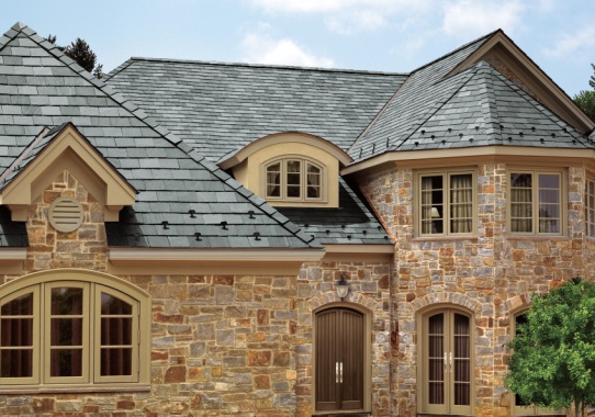 • French Country: For these homes, the extensive use of stone and other masonry products incorporates various accent colors. Therefore, many different types of shingles and colors look good with this type of home. Camelot® Lifetime Designer Shingles, with their slate-like design, add another dimension of style to the roof while still maintaining the integrity of the overall architecture. For an affordable luxury option, consider Camelot II, which has the same type of look as Camelot but at a lower cost. The sleek lines of Slateline® shingles also work well with the French Country style.